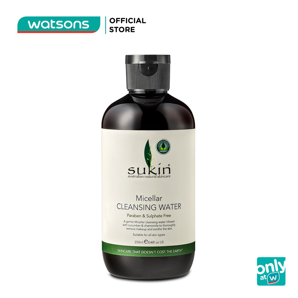 - Nước Tẩy Trang Sukin Micellar Cleansing Water hành phần chiết xuất từ lô hội giúp loại bỏ hoàn toàn lớp trang điểm và các bụi bẩn nằm sâu bên trong da, giúp da mềm mịn và sạch sẽ. Sự kết hợp giữa hoa cúc La Mã và dưa leo có tác dụng làm dịu và cung cấp độ ẩm nhẹ cho da.