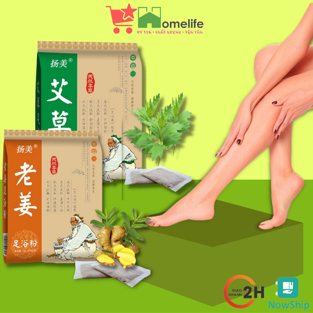 Giới thiệu Thảo Dược Ngâm Chân Ngải Cứu, Gừng - Bịch 100 Gói Thải Độc Bàn Chân