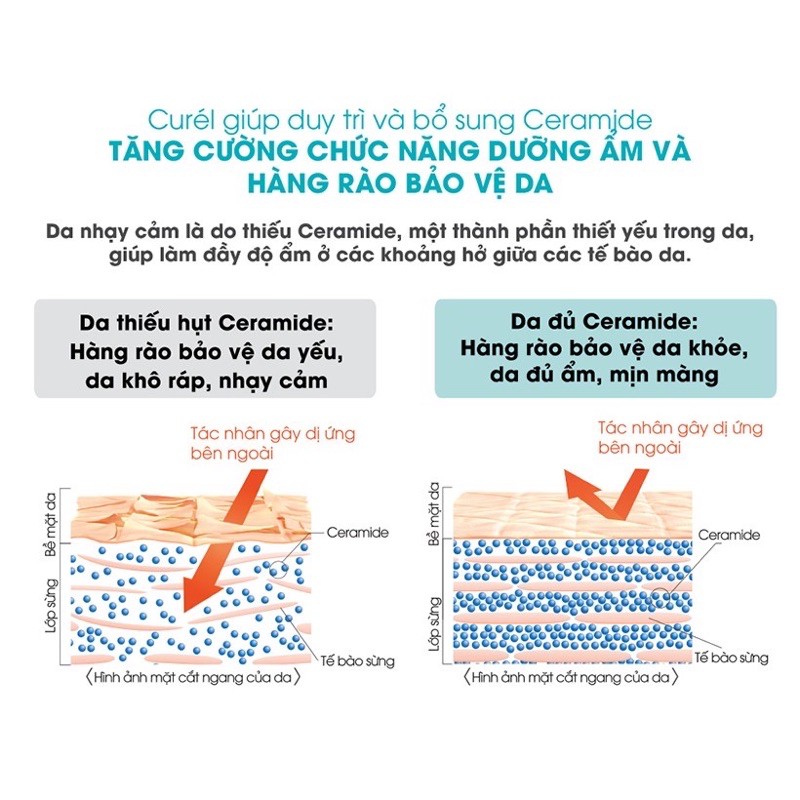 Curél chứa hoạt chất Ceramide, được chứng minh lâm sàng có tác dụng cấp ẩm và dưỡng ẩm sâu, tăng cường hàng rào bảo vệ da khỏi tác nhân gây dị ứng bên ngoài. Curél không chỉ giúp cải thiện các vấn đề về da từ sâu bên trong, mà với công thức nhẹ dịu, sản phẩm không gây dị ứng, không mùi, không màu, không có cồn và độ pH cân bằng. Tất cả đều được xác nhận bởi 3.900 bác sỹ da liễu tại Nhật Bản.