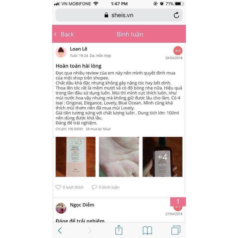 🔛🔛Tinh dầu dưỡng tóc Raip R3 Argan Hair Oil - Là một trong những sản phẩm bestseller tại thị trường Hàn Quốc. Với thành phần 100% dầu Argan, mang lại mái tóc bóng mượt cùng mùi thơm cực kỳ quyến rũ suốt cả ngày. Đặc biệt sản phẩm không chứa cồn (Alcohol Free) rất lành tính cho tóc và da.