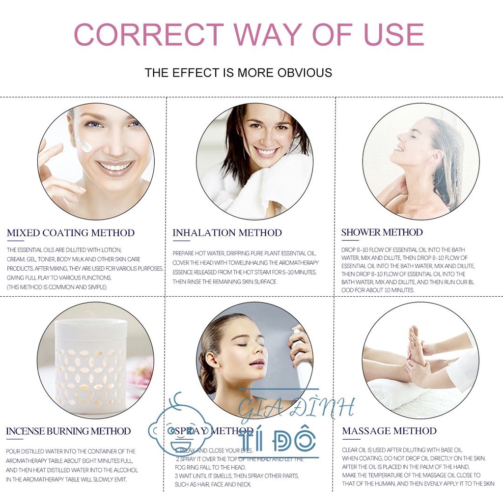 Tinh dầu xông dùng để pha vào nước và sử dụng với máy xông tinh dầu để tạo mùi thơm cho không gian xung quang