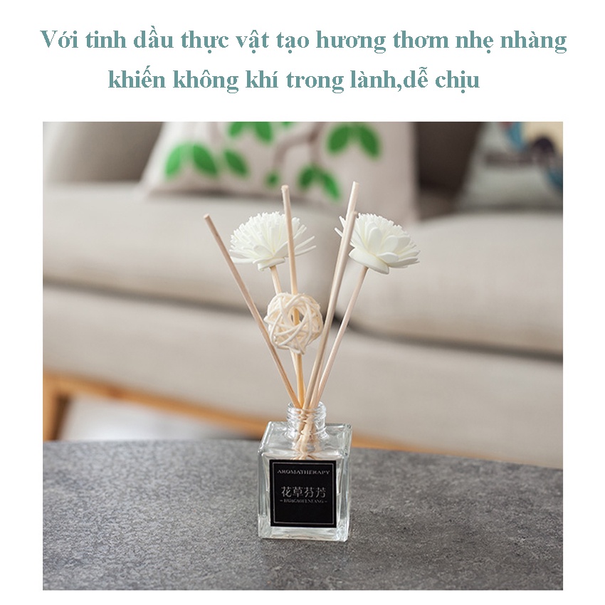 - Chỉ cần cắm bộ que cho sẵn vào lọ tinh dầu đợi 36-48h ngấm đủ sẽ khuếch tán ra khắp phòng