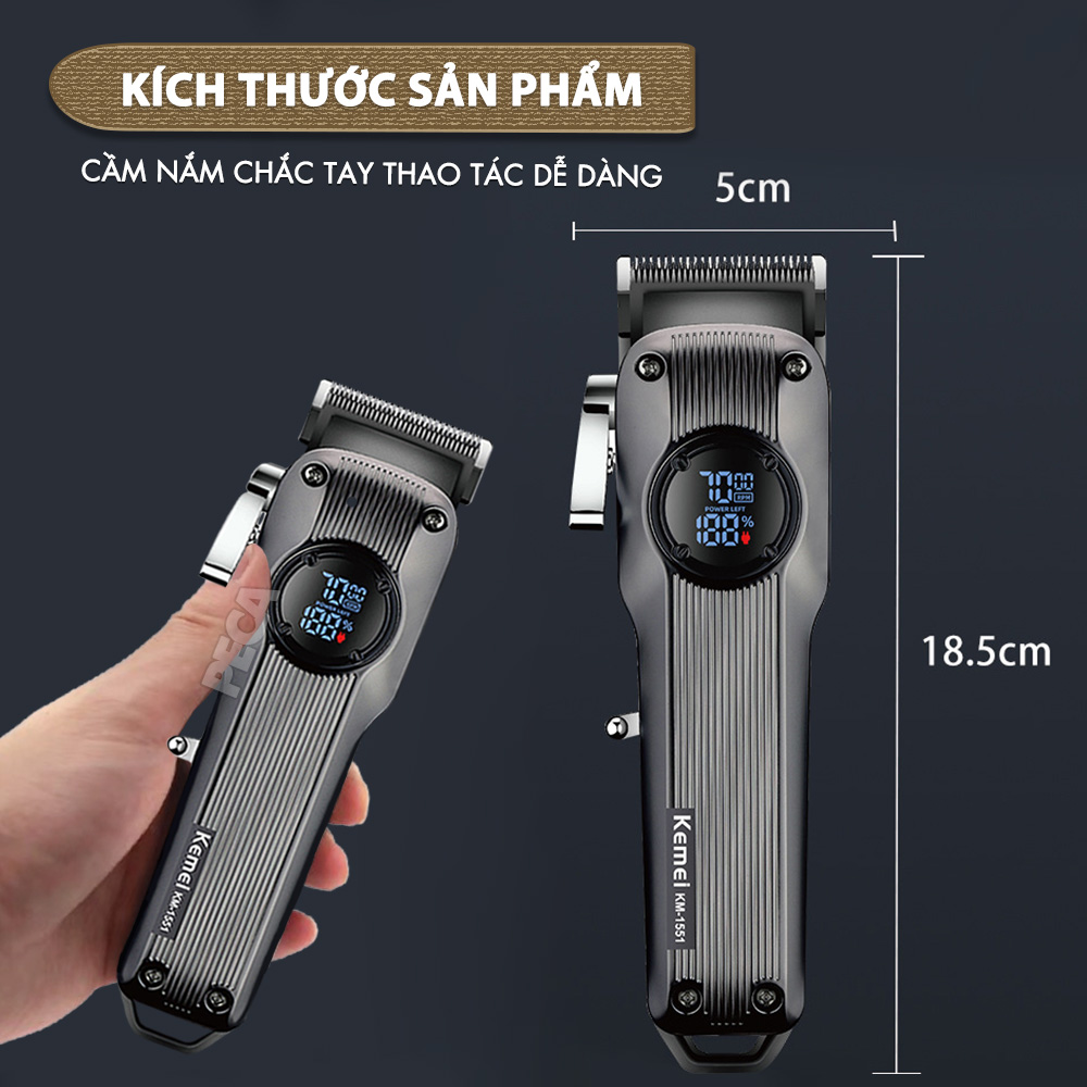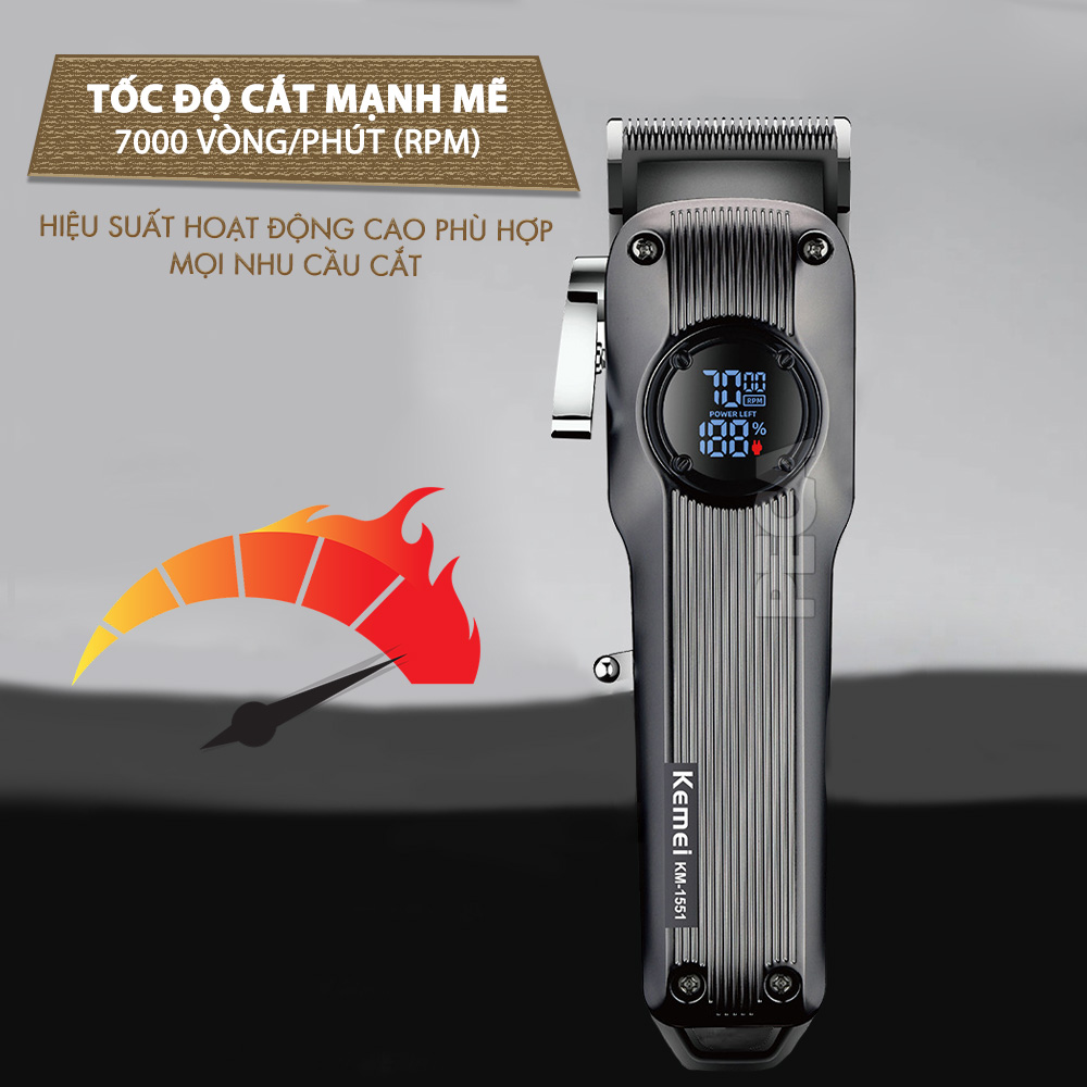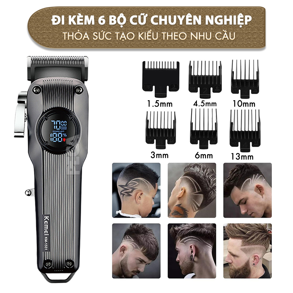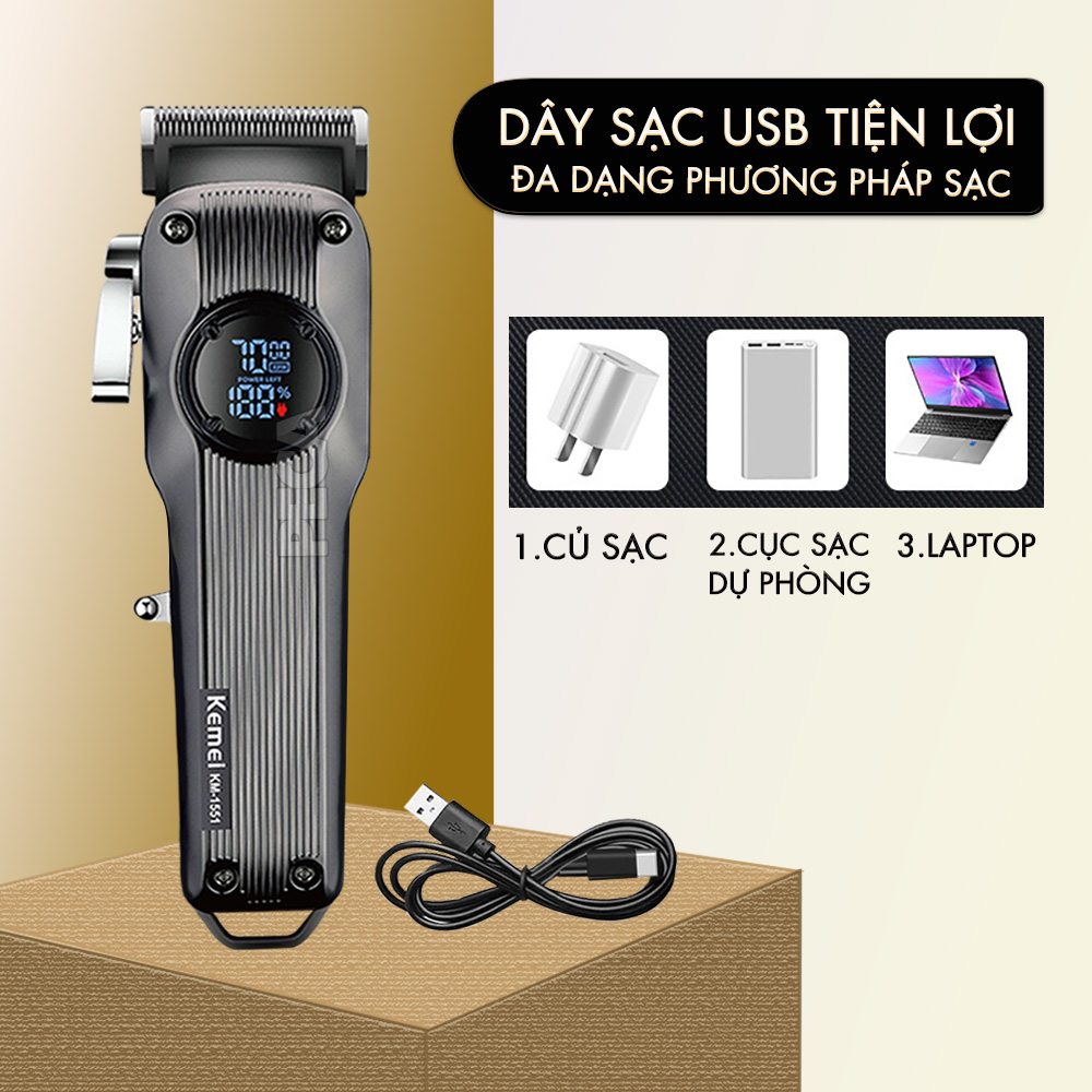 Tông đơ cắt tóc chuyên nghiệp Kemei KM-1551 công suất mạnh 5W màn hình LCD sạc nhanh USB type C tiện lợi - Chính hãng